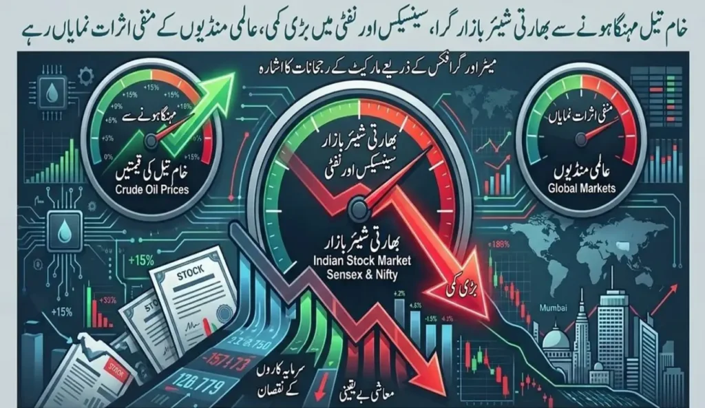 خام تیل مہنگا، بھارتی شیئر بازار میں شدید گراوٹ ریکارڈ