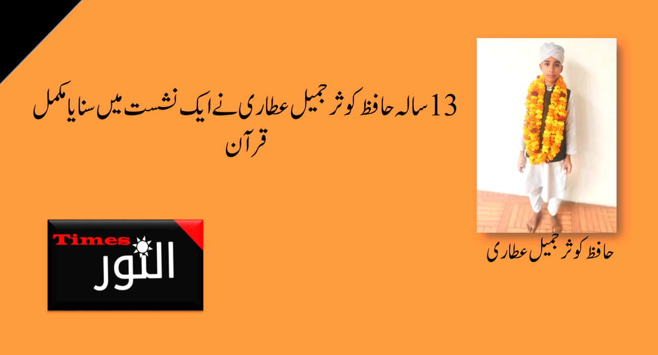 ایسے ہی خوش نصیبوں میں ایک درخشاں ستارہ عزیزم حافظ کوثر جمیل عطاری ابن امیر الحسن بھی ہیں، جو مدرسۃ المدینہ فیضانِ شارحِ بخاری، جلالپور،امبیڈکر نگر(دعوتِ اسلامی، انڈیا) کے ہونہار طالب علم ہیں۔ جنہون نے حضرت.حافظ وقاری ابصار احمد اشرفی کی سرپرستی اور اپنے استادخاص حضرت حافظ وقاری غفران صاحب اشرفی کی نگرانی میں صرف 13 سال کی عمر میں مکمل قرآن مقدس حفظ کرنے کے ساتھ مکمل قرآن کو ایک نشست میں سنانے کا شرف بھی حاصل کرلیا-محض 13 سال کی عمر میں صرف 13 ماہ کے مختصر عرصے میں مکمل قرآنِ کریم حفظ کر لینا ہی ایک بڑی سعادت تھی، مگر اس سے بھی بڑھ کر حیرت انگیز اور قابلِ فخر کارنامہ یہ ہے کہ انہوں نے ایک ہی نشست میں مکمل قرآنِ کریم زبانی سنا کر اپنے والدین، اساتذہ اور اہلِ علاقہ کا سر فخر سے بلند کر دیا!