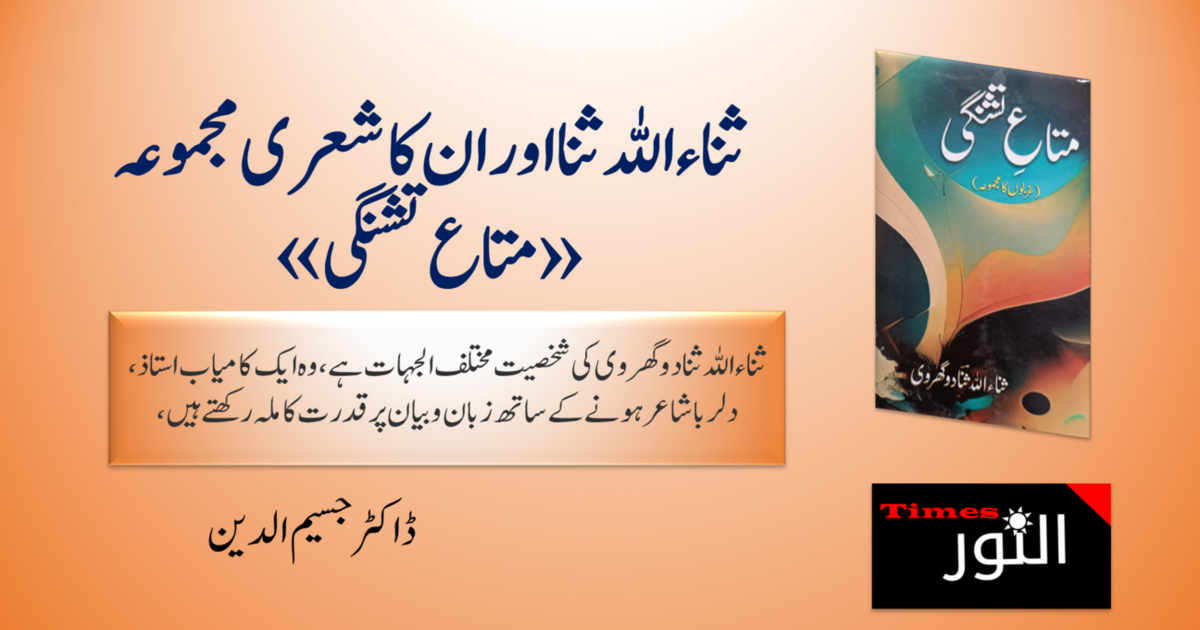 تنقید و تبصرہ ثناء اللہ ثنا اور ان کا شعری مجموعہ ’’متاع تشنگی‘‘ admin@alnoortimes.in جنوری 20, 2025 ڈاکٹر جسیم الدین مترجم، محکمہ کابینہ سکریٹریٹ، پٹنہ بہار ثناء اللہ ثنا دوگھروی کی شخصیت مختلف الجہات ہے، وہ ایک...