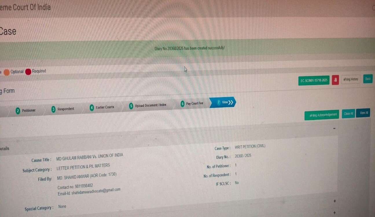 خبرنامہ منسٹر محمد غلام ربانی نے وقف ترمیمی بل 2025 کے... admin@alnoortimes.in اپریل 20, 2025 منسٹر محمد غلام ربانی نے وقف (ترمیمی) ایکٹ 2025 کو سپریم کورٹ میں چیلنج کرتے ہوئے اسے اقلیت دشمن، غیر...