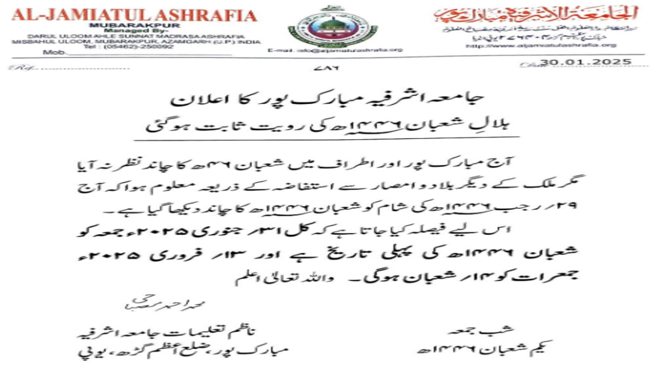 خبرنامہ جامعہ اشرفیہ مبارک پور کا اعلان ہلال شعبان 1446ھ کی... admin@alnoortimes.in جنوری 30, 2025 اشرفیہ مبارک پور مبارک پور: جامعہ اشرفیہ مبارک پور نے اعلان کیا ہے کہ ہلال شعبان 1446ھ کی رویت ثابت...