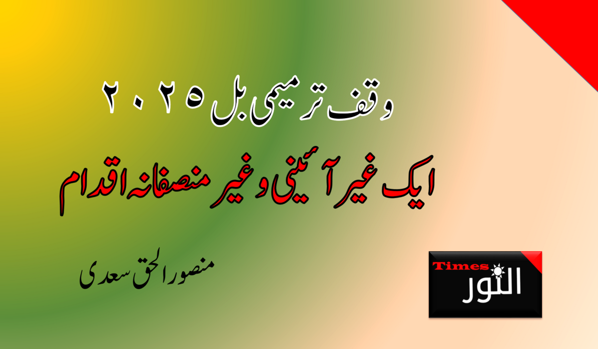 تحقیق نامہ وقف ترمیمی بل ٢٠٢٥ ایک غیر آئینی و غیر منصفانہ... admin@alnoortimes.in جنوری 30, 2025 منصور الحق سعدی ،علی گڑھ بھارت کا آئین ہر شہری کو مساوات، مذہبی آزادی اور اقلیتوں کے حقوق کی مکمل...